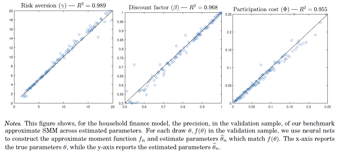 Performance of SMM Approximation using neural nets — household finance model